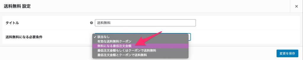 - 「送料無料となる必要条件」から「無料になる最低注文金額」を選択します。