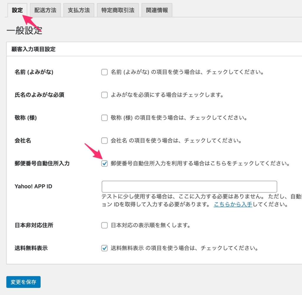 設定のタブの「郵便番号自動住所入力」にチェックをするだけです。