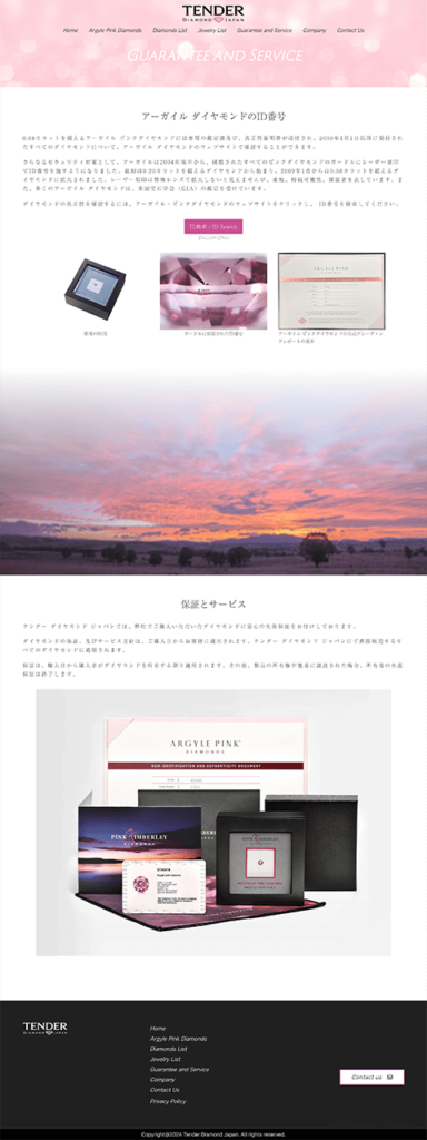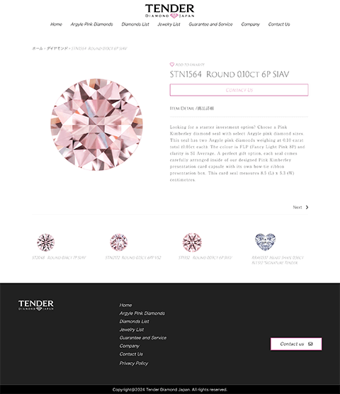 Pink Kimberly Diamonds 日本正規代理店、テンダーダイヤモンドジャパン様のコーポレートサイトを制作しました。