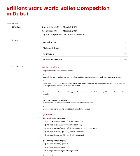 ドバイで開催されるバレエの国際大会の募集ページを制作いたしました。