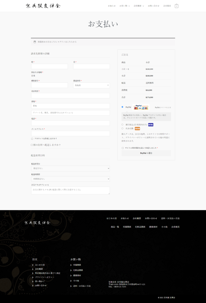 会員機能があり、時間帯指定配送、送料の一定条件の無料設定など、日本の一般的なECサイトのカスタマイズがされています。WooCommerceは海外のカートシステムですが、日本の商習慣に合わせたカスタマイズが可能で日本でも約6000件をこえるの導入事例があります。